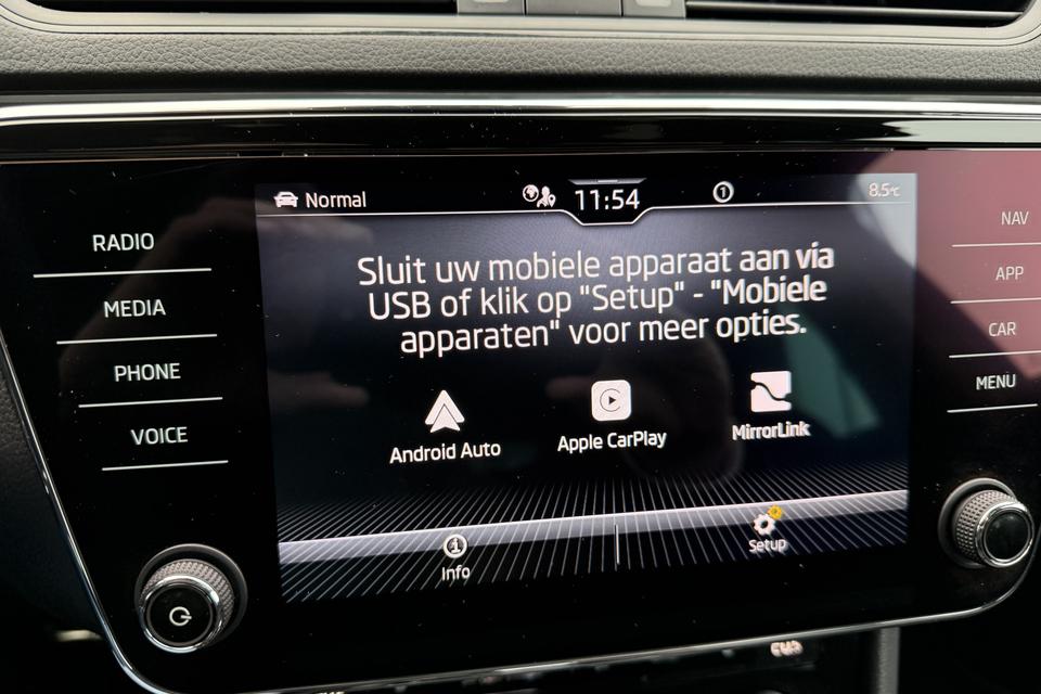 Ontdek de digitale mobiliteitswereld, met zijn dashboard dat alle noodzakelijke informatie projecteert om uw reis comfortabel en veilig te maken. Met de achteruitrijcamera ziet u precies wat er achter de auto gebeurt. Filerijden? Doodvermoeiend. Daarom helpt de file assistent zo nodig een handje. Door automatisch afstand te houden, en te stoppen als uw voorligger stilstaat. De radio harder of zachter zetten of iemand uit uw contactenlijst bellen. Dankzij de spraakbediening doet u dit allemaal met uw stem. Deze ŠKODA Superb Combi is voorzien van remote services. Via uw smartphone bedient u diverse functies ook op afstand en krijgt u informatie over de status van uw auto. Natuurlijk behoren premium audiosysteem, full map navigatiesysteem, WIFI-hotspot, achteropkomend verkeer waarschuwing, automatische airconditioning en schakelpaddles aan het stuur ook tot de uitrusting van deze complete auto.